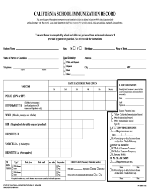 Ca Immunization Record Form Fill Out And Sign Printable Pdf Template Signnow